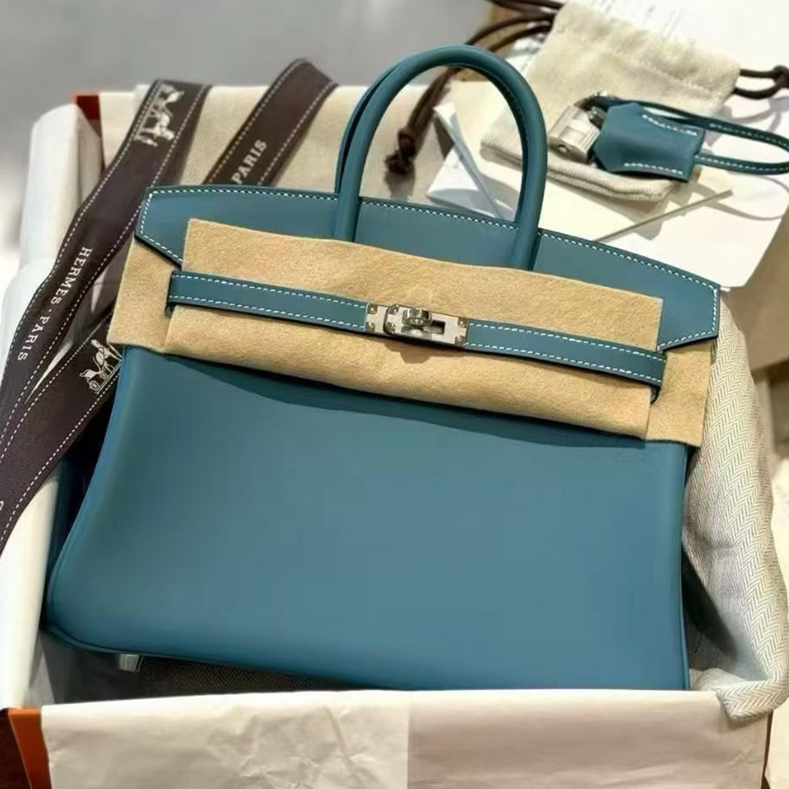 Birkin 25 Blue Jean Swift Palladium Hardware Stamp K