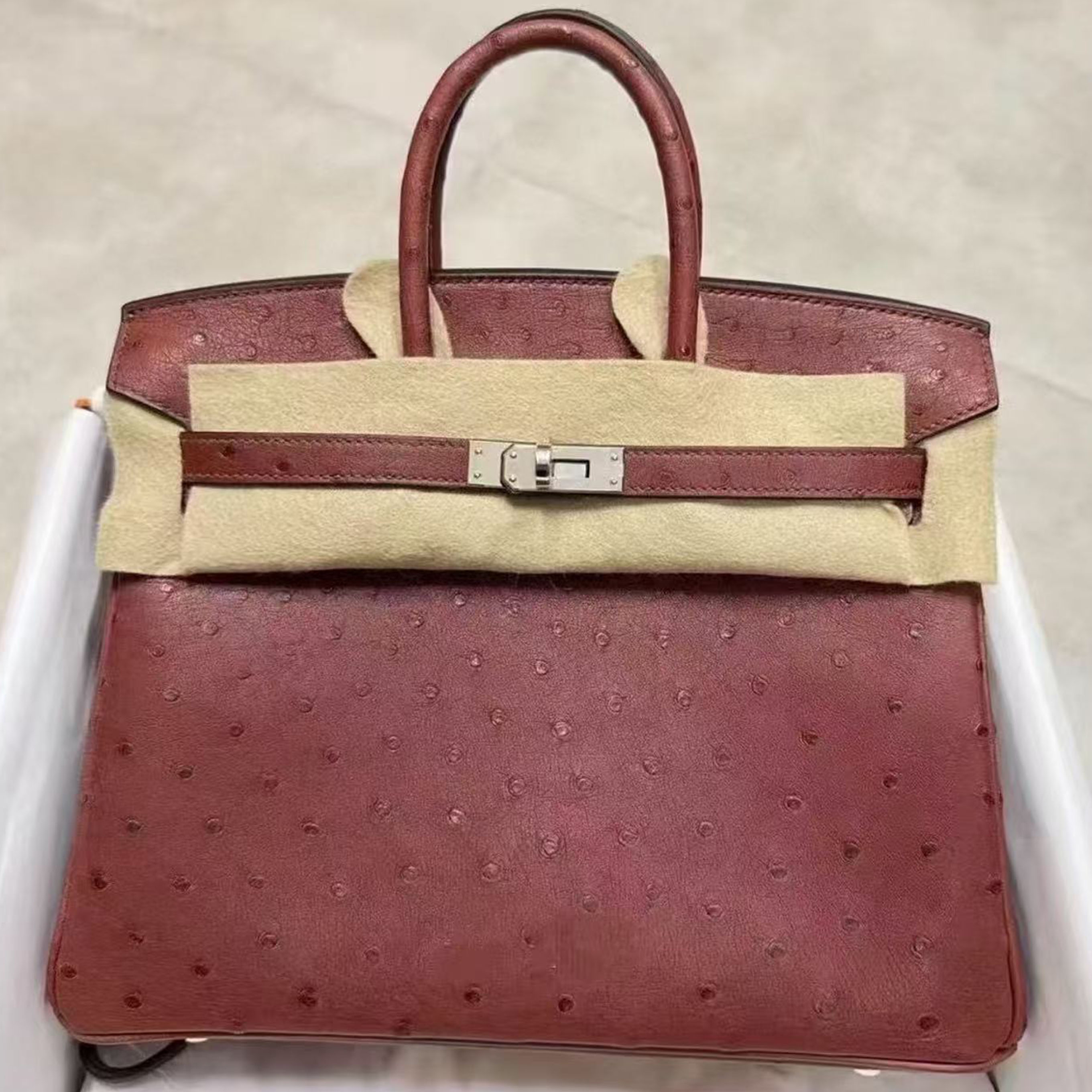 Birkin 25 Rouge H Ostrich Palladium Hardware Stamp K