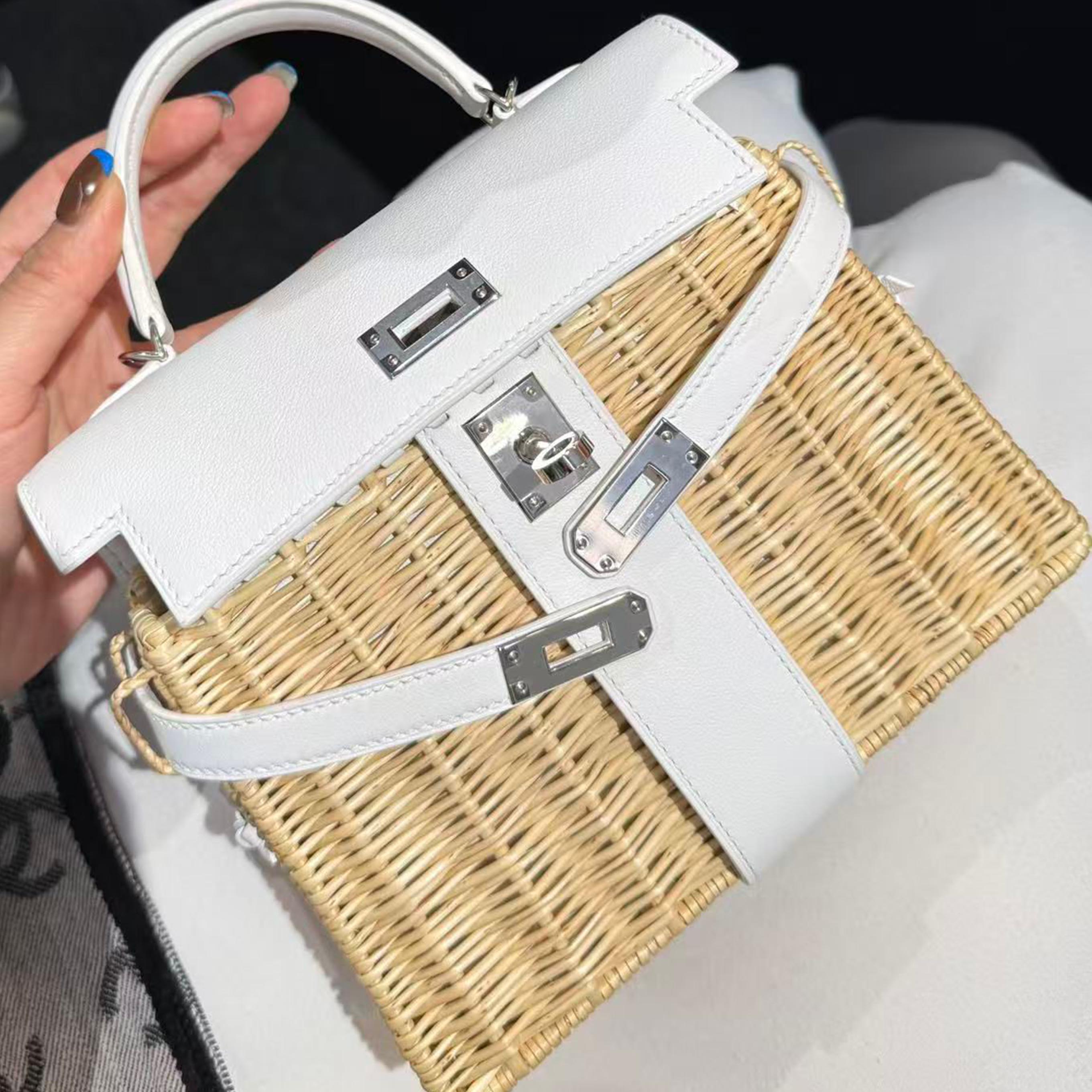 Kelly 20 Mini New White Picnic Palladium Hardware Stamp B