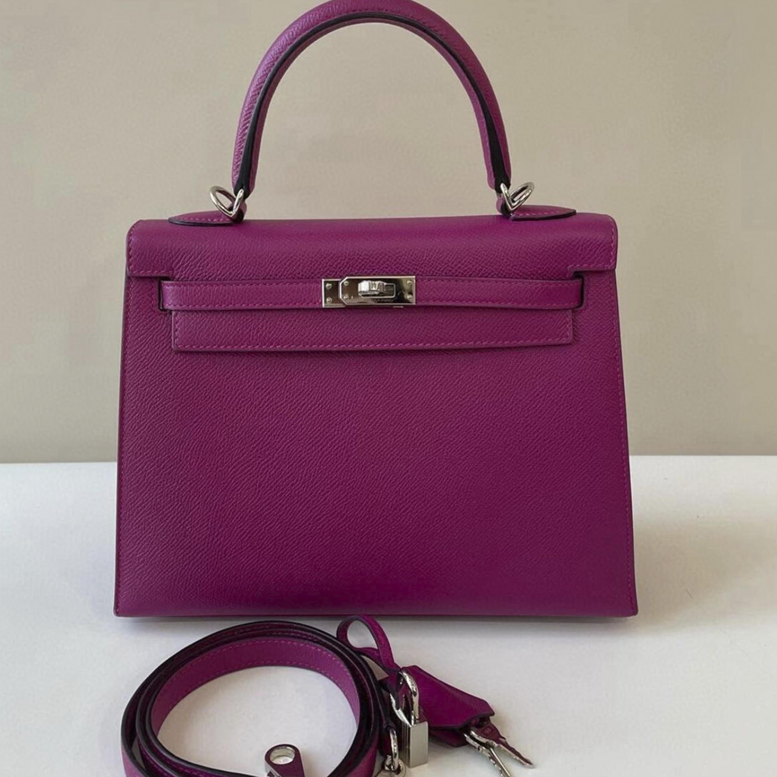 Kelly 25 Rose Porpur Epsom Palladium Hardware Stamp A