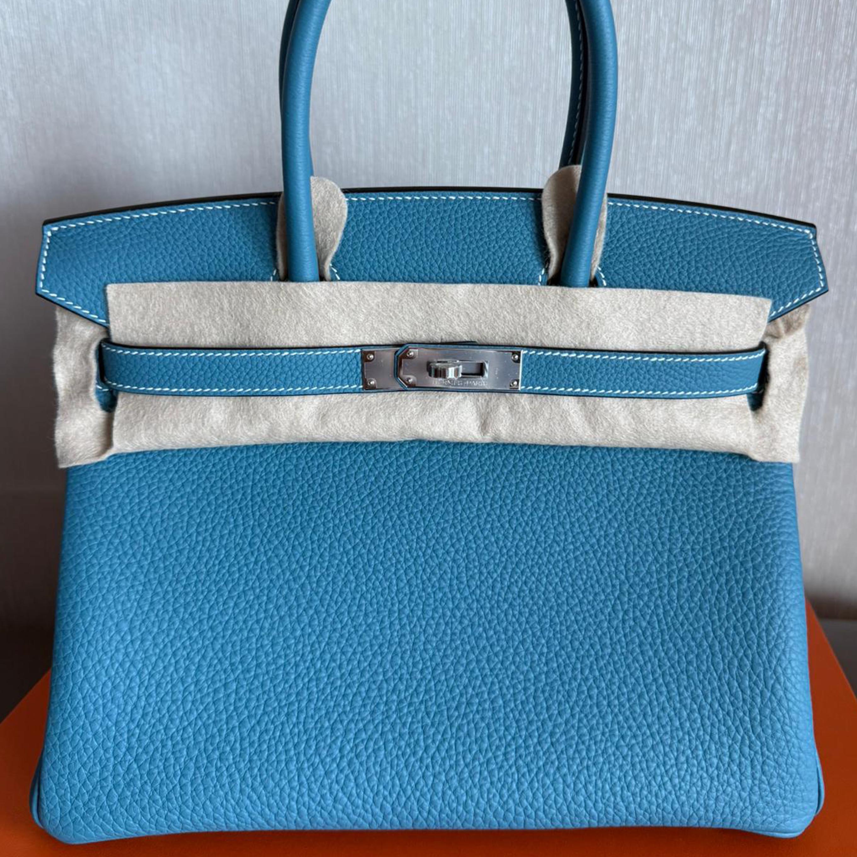 Birkin 30 Blue Jean Togo Palladium Hardware Stamp K