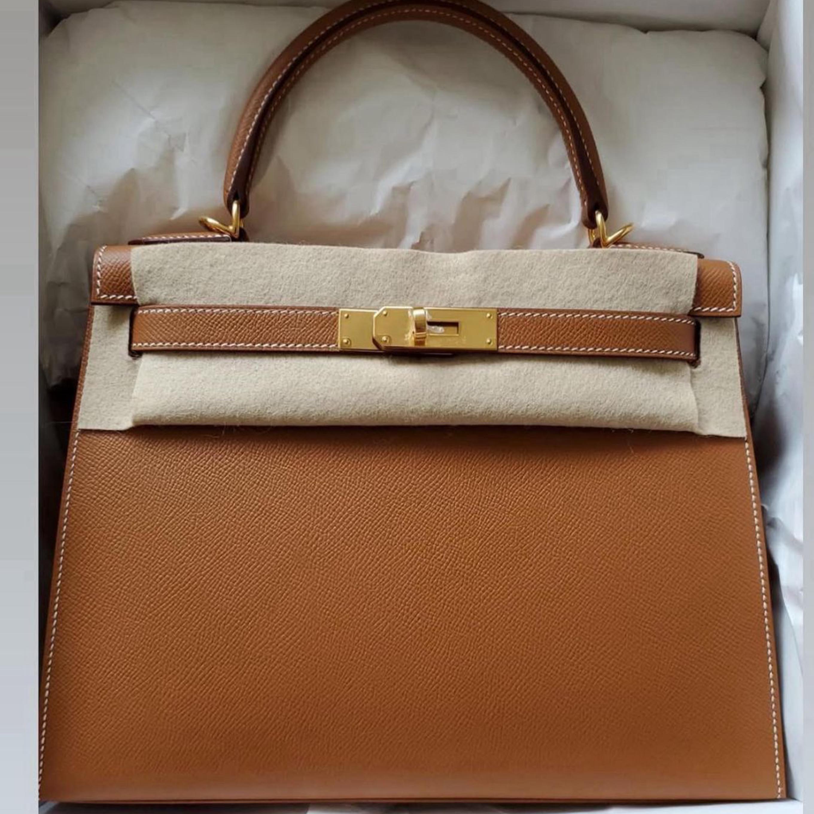 Kelly 28 Gold Epsom Gold Hardware Stamp K